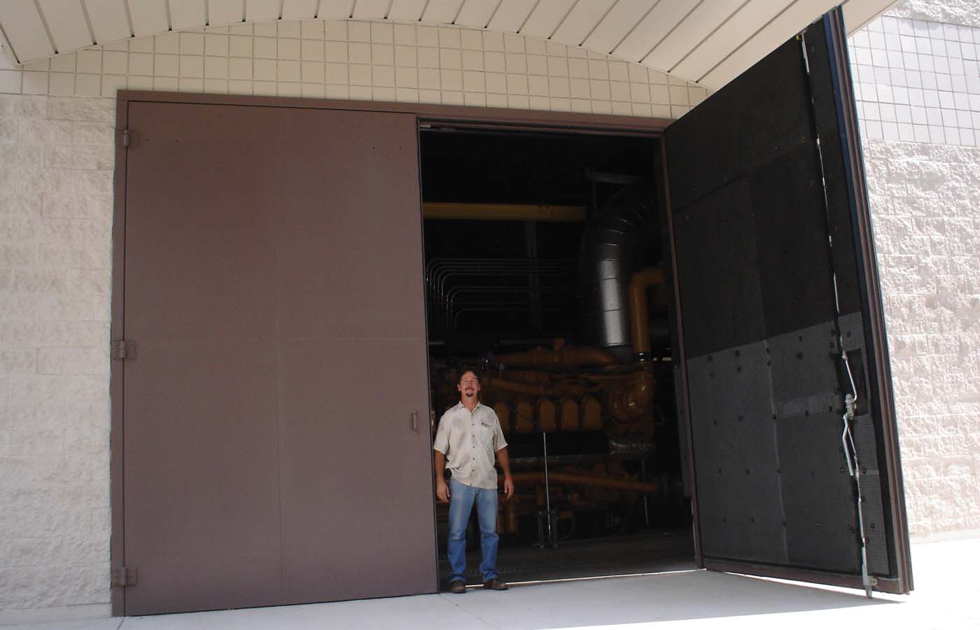 required powerful oversized acoustical doors to provide access to plant machinery while preventing
